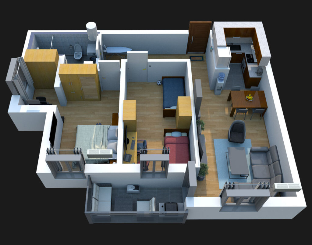 Renderi prikazuju samo idejno rešenje stanova u Lux Residence, pružajući vam vizualizaciju osnovnog rasporeda i dizajna prostora. Ovaj početni koncept omogućava kupcima potpunu slobodu u oblikovanju i sređivanju svog budućeg doma. Sa mogućnošću izbora materijala, boja i unutrašnjih detalja, svaki stan možete prilagoditi prema vlastitim željama i potrebama, stvarajući prostor koji savršeno odražava vaš životni stil.