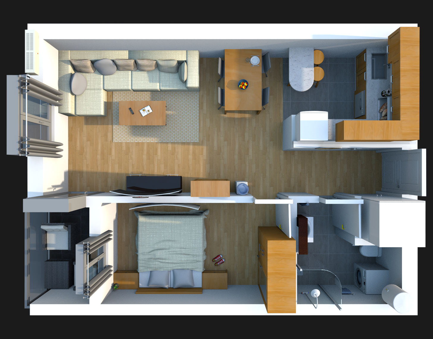 Dvosobni stanovi su dizajnirani za manje porodice ili one koji žele dodatnu sobu za rad, hobije ili goste. S optimalnim rasporedom, prostranim dnevnim boravkom i odvojenim spavaćim sobama, pružaju savršen balans između funkcionalnosti i privatnosti. Ovi stanovi su odličan izbor za dinamičan način života u prijatnom i modernom ambijentu.