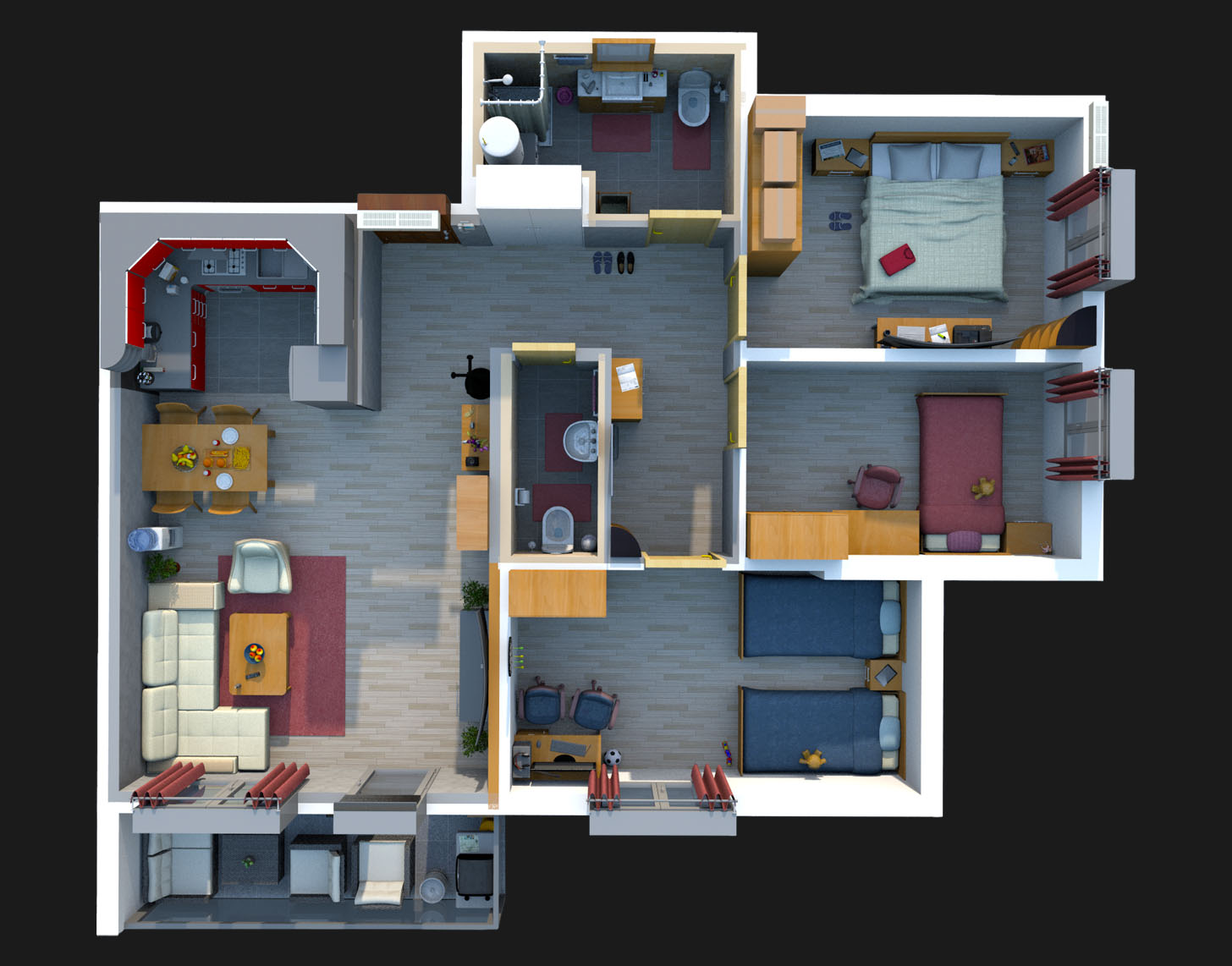 Četvorosobni stanovi u Lux Residence namenjeni su velikim porodicama ili onima koji žele vrhunski komfor i obilje prostora. Sa čak četiri odvojene spavaće sobe, prostranim dnevnim boravkom i pažljivo osmišljenim rasporedom, ovi stanovi omogućavaju visok nivo privatnosti i udobnosti za sve članove domaćinstva. Idealni su za porodični život, rad od kuće ili stvaranje dodatnih prostora po vašim potrebama, uz moderan dizajn, kvalitetne materijale i osećaj pravog doma.